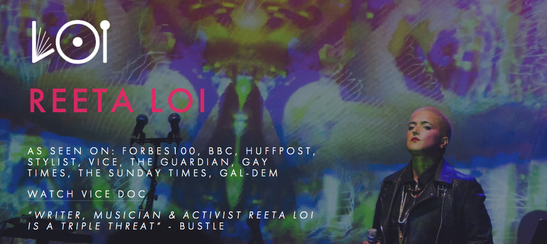 Earlier this year, as her activism in the Indian Gay community really blew up, Reeta decided to rebrand simply as Loi for which I designed a new identity including logo, colour palette and Social Icons. The three letters in the Loi logo represent her core talents of writing, music and public speaking.